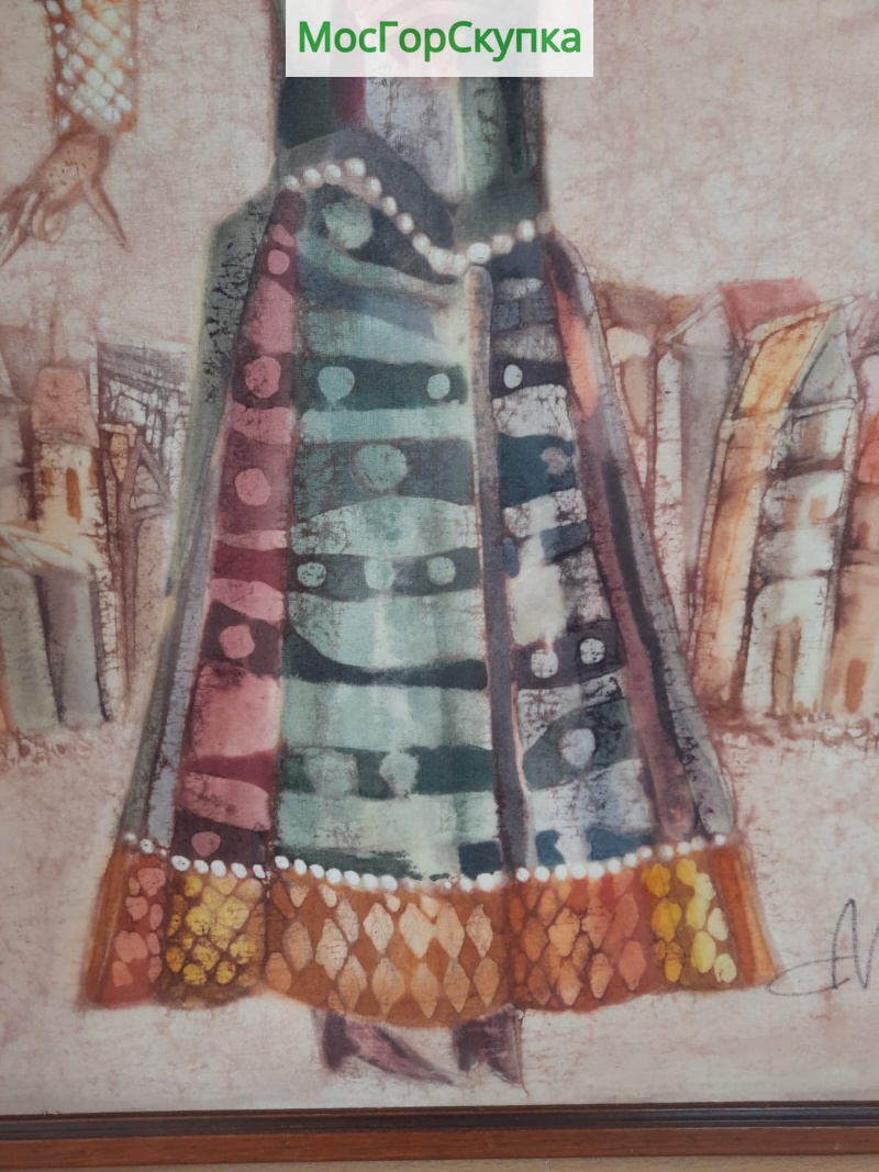 Картина Девушка с веером. Батик. Автор. Баранихина А. — Размер 89х69 см